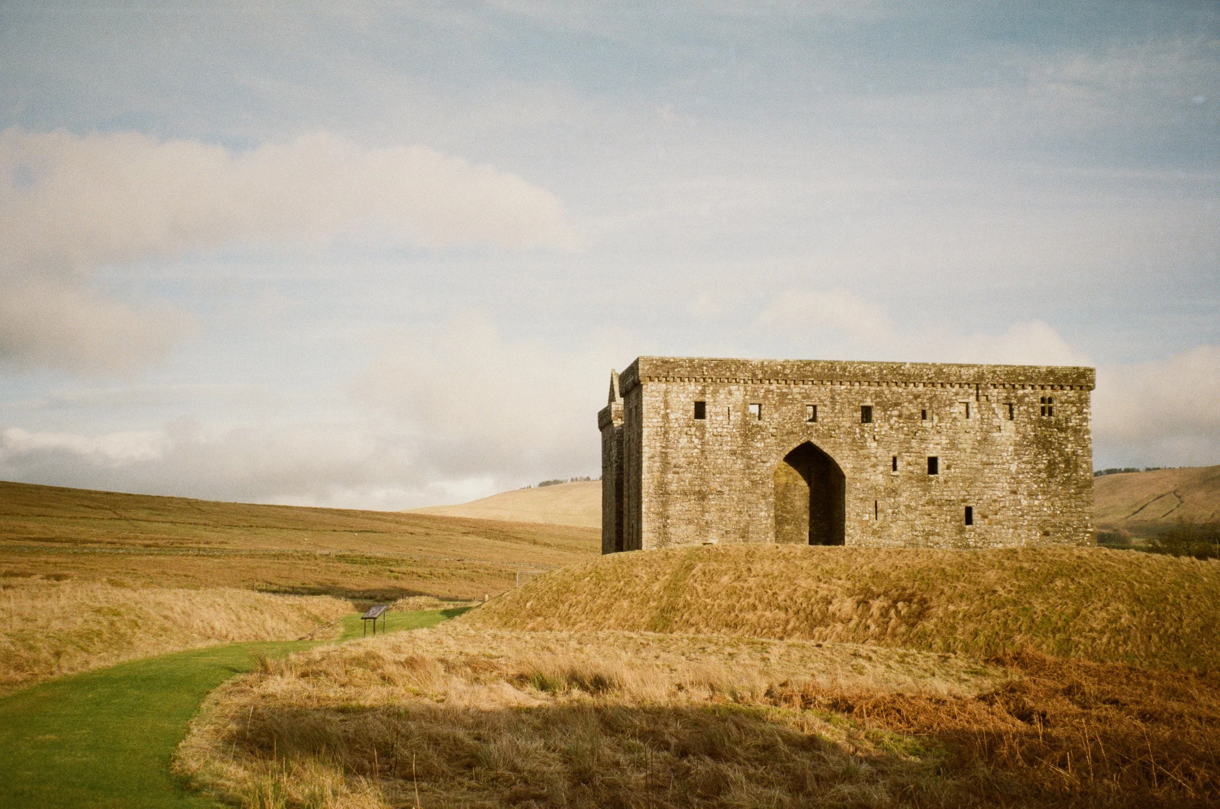 A highland coo missing a horn on a blustery afernoon in Northumberland